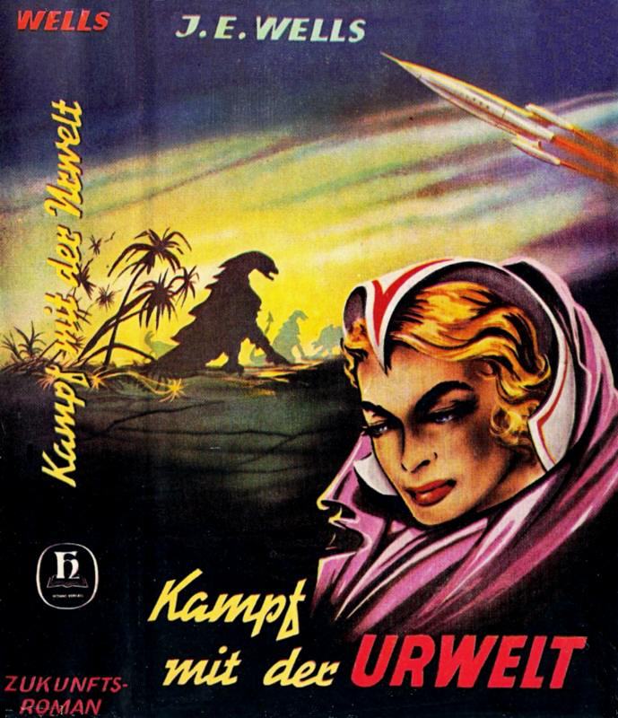 [ OA | o. J. (Juni 1957) | 253 S. | 18,5 x 12,5 | Farb. ill. Supronyl m. SU: DM 6,30 | mit Werbung für "Zukunftsromane von J. E. Wells" auf dem hinteren Buchdeckel ]