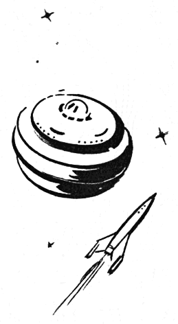 [ OA | 1952 | 1.-2. Tausend | 237+2=239 S. | 20 x 13,5 | Beiger (auch: roter) Leinenband m. farb. ill. SU: DM 9,80 ++ Kartoniert m. SU: DM 7,80 | Reihe "Rauchs Weltraum-Bücher" # 3 ] +=