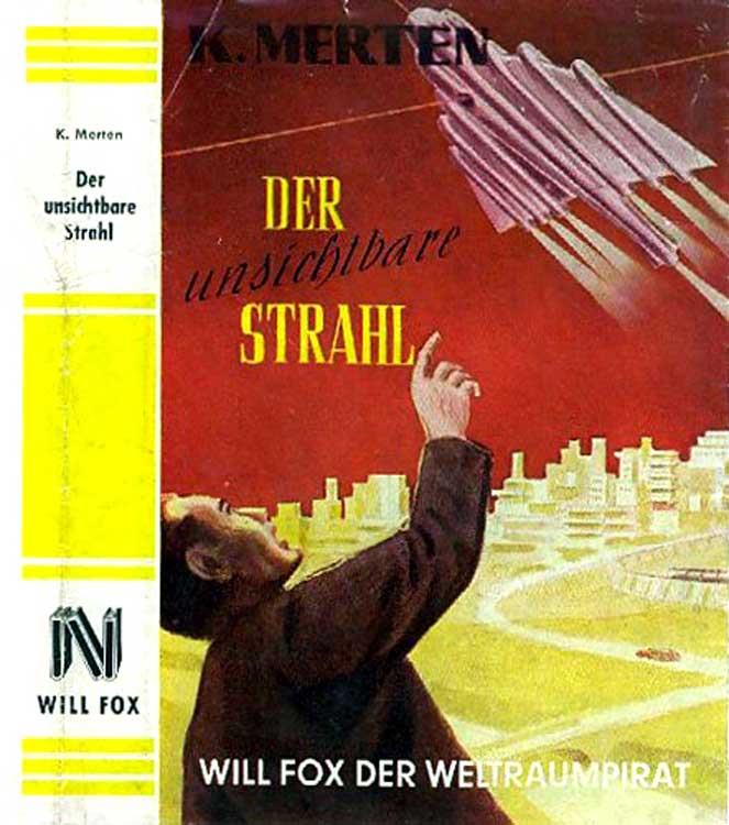 WILL FOX - Der Weltraumpirat | Band # 6K. MERTEN[ Hanns Kurth (1904-1976) · alias C. C. Zanta · alias Tom Larsen ]DER UNSICHTBARE STRAHLEs mochte morgens gegen zwei Uhr und einige Minuten gewesen sein. Genau konnte man es nie mehr feststellen, weil der einzige Augenzeuge, der diesen Vorfall überlebte, keine Uhr bei sich trug und in den nächsten Minuten alles wie ein Spuk verflogen war.Ein Tunnel von 1,2 m Durchmesser hatte sich durch eine Maschine hindurchgeschlagen, die zu dem besagten ungewissen Zeitpunkt über East-City flog. Dieser Tunnel ging nicht nur durch diese Maschine hoch in den Lüften, sondern auch durch Häuser, durch Keller, in die Erde hinein bis auf 30 m Tiefe, um sich dann irgendwo im festen felsigen Untergrund von East-City zu verlieren. Noch eine Seltsamkeit, die nachher die zeitliche Kontrolle des Vorfalls in seinem frühesten Beginn so schwierig machte: jenes Flugzeug stürzte nicht ab!Es war ein Strahl gewesen, aber niemand hatte ihn gesehen.Damit beginnt das Geheimnis um den unsichtbaren Strahl, um ein Phänomen, das sich durch einen der spannendsten abenteuerlichen Romane aus dem Jahre 1975 hindurchzieht - wie ein roter Faden, aber eben wie ein Lichtstrahl, den niemand sieht.Es gab gar keine andere Möglichkeit, als Will Fox, den alten, bewährten Weltraum-Piraten heranzuziehen und ihm die Untersuchung dieses Phänomens anzuvertrauen, von welchem innerhalb weniger Tage eine Bedrohung des Globus auszugehen schien. Harter Kampf mit dunklen Elementen, mit geheimnisvollen Menschen und Wesen, die nicht irdischen Ursprungs sind - bilden die Kulisse dieses Kampfes mit den Urhebern des unsichtbaren Strahls, der auflöst, was er berührt, der durchstößt, was er trifft.Will Fox sieht nach kurzer Zeit ein, daß allein mit irdischen Mitteln der Ringkampf mit den geheimnisvollen Kräften nicht geführt werden kann. Aber wer soll ihm zur Seite stehen? Wo soll er die Helfer alarmieren, die stark genug sind, um irdischen und außerirdischen Gefahren nicht nur zu begegnen, sondern diese auch in ihrem Ursprung abzustellen?Es gelingt Will Fox, Wege zu gehen, die kein Mensch vor ihm beschritt. Und auf diesen Wegen gelingt es ihm, eine Bresche in das geheimnisvolle Tun jener zu schlagen, die sich hinter dem unsichtbaren Licht, hinter dem unsichtbaren Strahl verbergen - weil sie ein Ziel verfolgten, dessen Entdeckung für die Menschheit Rettung aus großer Gefahr bedeutet.REIHENBUCH-VERLAG GMBH FRANKFURT AM MAIN - FRANKFURT UND ZÜRICH[ OA | 1953 | 255 S. | 19 x 13,5 | Farb. ill. Supronyl m. SU: DM 6,80 | Reihe "WILL FOX - Der Weltraumpirat" Band # 6 - gestaltet und niedergeschrieben von K. Merten | mit Verlagswerbung für diese Reihe auf dem hinteren Buchdeckel ] +Will Fox - Der WeltraumpiratEine einmalige abenteuerliche Romanreihe!Mit jedem Fortschritt der Technik taucht die bange Frage auf:Wird die neue Erkenntnis dem Fortschritt oder dem Untergang der Menschheit dienstbar gemacht?Diese Frage wird auch noch die Erdenbürger bewegen, die im Jahr 1975 und später leben!WILL FOX weiß um die Sehnsucht seiner Erden- und Weltraumbewohner!Er hat sein Leben dem Kampf im Weltenraum verschrieben.Seine Erlebenisse sind hart und spannend, er kennt die technischen Errungenschaften von Freund und Feind! Sein persönlicher Einsatz macht ihn so siegessicher!WILL FOX-Abenteuer sind utopisch, aber durch die menschliche Note greifbar nahe!WILL FOX-Abenteuer sind immer aufregend, immer interessant für unsere Leser.[ Reihenbezeichnung: