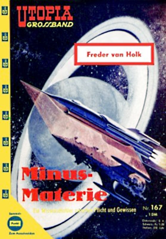 WERNER KEYEN[ Paul Alfred Müller (1901-1970) - alias Freder van Holk ]DIE MINUSMATERIEUnweit Scranton in England gähnt ein riesiger Krater. Professor Howard Anderson ist bei Versuchen in seinem Forschungszentrum in die Luft gegangen. Die kritische Menge Minusmaterie ist explodiert.Die Welt hält den Atem an. Ein fremder Raumkreuzer nähert sich. Das Experiment gilt unserem Globus. Ein Druck auf den Knopf, und unser Planet wird zu einer Nova verglühen. Wo ist ein Experte für Minusmaterie, der die Menschheit rettet?Grünhaarige Frauen holen sich Erdenmänner ins Raumboot, aber Krieg und Flucht brennen in den Sphären des Firmaments. Minusmaterie und irdische Materie drohen sich unter gewaltigem Stoß in Energie zu verwandeln. Da ringt der junge Jasper Anderson um eine Entscheidung, und Hauptmann Oliver Brand wird sich vor Vergnügen in die Rippen stoßen, auch wenn die Raumschifftoten auf der Erdmaterie nicht liegenbleiben wollen.Ihr Hermann-Borgsmüller-VerlagHERMANN BORGSMÜLLER VERLAG · MÜNSTER / WESTF.[ OA | o. J. (1960) | 248 S. | 18,5 x 12,5 | Farb. ill. Supronyl m. SU: DM 6,80 | mit einer Werbeseite des SCIENCE FICTION CLUB EUROPA ] +[ TG # 12 - Feb 1960 | Illmer-149 | Serowy # 597-344 | ddb+ (falsches Jahr: ~1955) ]