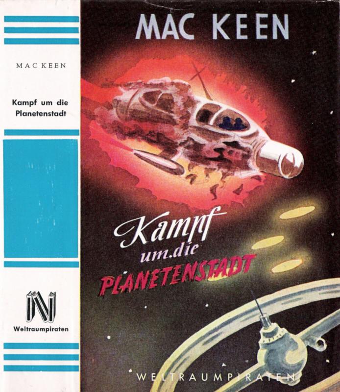 WELTRAUMPIRATEN | Band # 17MAC KEEN[ Ungelöstes (Verlags) Pseudonym ]KAMPF UM DIE PLANETENSTADTBeamte der Welt-Sicherheitsbehörden mußten feststellen, daß auf der Erde Kräfte am Werke waren, verbrecherische Umtriebe und gefährliche Bestrebungen zur Ausführung kamen, welche die gesamte Ordnung bedrohten.Duncan O'Hara, der bekannte Bio-Chemiker, ist im Laboratorium mit seinem Assistenten ermordet worden. - - O'Hara hatte einen hochwirksamen Giftstoff - ein Toxin - entwickelt. Es handelte sich um das sogenannte Toxin Botinus; Herstellungsverfahren und das Gift selbst waren nicht aufzufinden.James Hunt wird mit seinem Freund und Gefährten Norbert Wells zum Sitz der Weltraumbehörden gebeten. Hunt startet sofort, während Wells einige Stunden später die Reise antreten wollte, aber Norbert Wells trifft nicht in der Hauptstadt der Weltregierung ein. Ueber seinen Verbleib lassen sich keinerlei Spuren finden.Crossman, der Leiter der Internationalen Verbrecherbekämpfung, verschwindet aus seinem Amtsgebäude - wurde er ermordet? Ist er entführt worden? - Auch die geheimsten Unterlagen gelangen in die Hände der Gangster-Organisationen.Verbrecher sitzen in den verantwortlichen Regierungsstellen!Sabotageanschlag auf ein Verkehrsflugzeug, alle Passagiere, darunter auch James Hunt, kommen ums Leben. Und diese Meldung war der Anfang vom Ende der beiden gefährlichsten Verbrecherorganisationen.Die Felsenstadt auf dem Planetoiden Ceres, Stützpunkt einer der beiden Banden, wird zum Ziel der notwendigen Unternehmungen.Und doch, alle Anstrengungen und Gefahren, die zwei unerschrockene Männer auf sich nehmen, scheinen umsonst. Die Weltraumfahrer müssen feststellen, daß jenes Toxin Botinus als vernichtende Waffe in den Händen eines Verbrechers geblieben ist. Kann die Gefahr noch abgewendet werden?REIHENBUCH-VERLAG GMBH - FRANKFURT AM MAIN[ OA | 1954 | 256 S. | 19 x 13,5 | Farb. ill. Supronyl m. SU: DM 6,80 | Reihe "Weltraumpiraten" (Band # 17) | mit Werbung für diese Reihe auf dem hinteren Buchdeckel ][ Reihenbezeichnung: