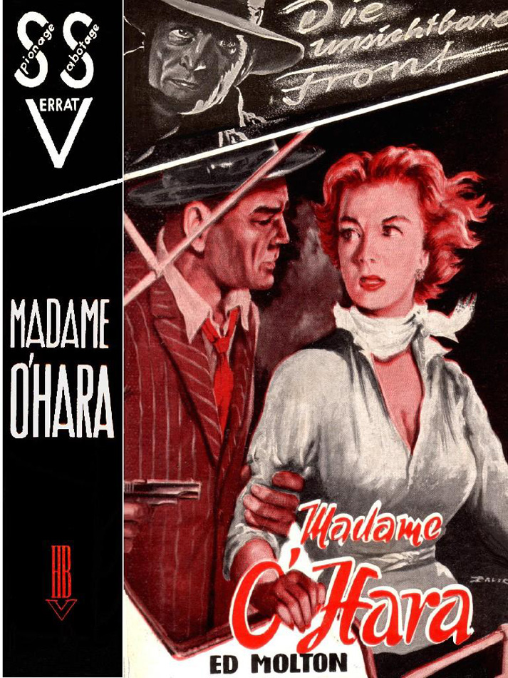 ED MOLTON [ Verlagspseudonym ]MADAME O'HARA[ Serie "Die unsichtbare Front - Spionage · Sabotage · Verrat" ]Eine Bestie in Menschengestalt steht im Mittelpunkt dieses Romans. Eine rotblonde, verwirrend schöne Frau, die ein erbarmungsloses Spiel als Doppelagentin treibt. Skrupellos nimmt sie die plumpen Vertraulichkeiten und zudringlichen Zärtlichkeiten von Männern hin, deren Tod sie längst beschlossen hat, weil sie ihr im Wege stehen. Der Verrat wird zum Lebensinhalt, Vernichtung und Tod ahnungsloser, zum großen Teil unschuldiger Menschen rührt sie nicht.Dieser packende Roman führt uns abscheuerregende Einzelheiten aus dem grausamen Kampf im Dunkel der unsichtbaren Front vor Augen. Die Macht einer eiskalten Frau, die messerschaft kalkulierend ihre Gegner abschätzt und ihre Freunde untereinander auszuspielen weiß. Wir erleben mit, wie es mitten im Krieg möglich war, ein Luxusleben zu führen, und wie es möglich war, heute in Berlin zu sein, morgen im neutralen Ausland und übermorgen in London. Wir lernen die schauerlichen Verließe des berüchtigten englischen Gefängnisses, des Tower, kennen, erleben mit, wie in buchstäblich letzter Minute eine gefaßte Agentin dem Henker entrissen wird, und wir betreten an der Seite der Heldin die geheimgehaltenen Verteidigungseinrichtungen an den Küsten in England und Frankreich, auf alliierter und deutscher Seite. Wir zittern, wenn die Eisenbetonbefestigungen durch Unterwassersprengungen mit berstender Detonation in die Luft fliegen und bangen um das Schicksal vaterlandsliebender Widerstandskämpfe, denen die Häscher nahe sind. Wir spüren die Angst der Gehetzten und den jagenden Puls der Gejagten ebenso wie das satanische Triumphieren der Handlanger eines verbrecherischen Systems.Impressum: Heros-Verlag Eschwege · Alle Rechte vorbehalten · Gesamtherstellung: Rud. Gottlieb, Bramsche.HEROS-VERLAG · ESCHWEGE[ OA | o. J. (1956-1959) | 269+1=270 | 18,5 x 12,5 | Farb. ill. Supronyl m. SU | Reihe "Die unsichtbare Front" # 9 | Cover mit Bruck-Signatur ][ Hethke/Skodzik 9. Aufl. 2007-515 (up) | ddb+ ]Materialien / Rezensionen: