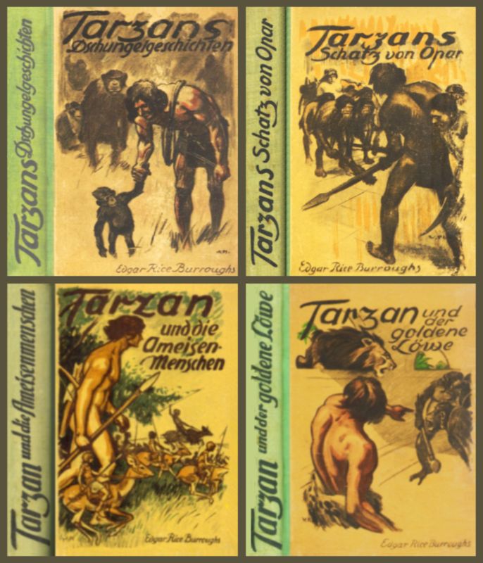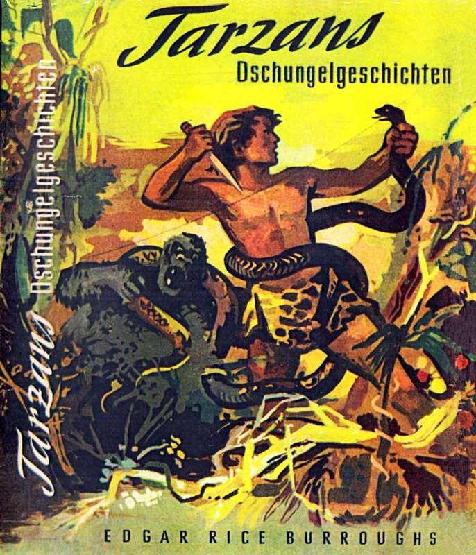 EDGAR RICE BURROUGHS [ 1875-1950 ]TARZANS DSCHUNGELGESCHICHTENenthalten eine Reihe spannungsgewaltiger, außergewöhnlich farbenschillernd geschriebener Szenen aus Tarzans Jugendleben. Die Leser der ersten Bände wissen, daß Tarzan nach dem Tode seiner Eltern in jener kleinen Hütte vor dem landumschlossenen Hafen am Dschungelrand seine Kindheit an der Brust einer häßlichen, behaarten Äffin verbrachte und keine anderen Genossen gekannt hatte als die mürrischen Bullen die die knurrenden Weibchen von Kerschaks, dem großen Affen, Horde.Er wurde groß unter wilden Tieren und kämpfte nach dem Naturgesetz der Dschungel. Seine Stärke, seine Gewandtheit, sein Mut und seine Klugheit ließen ihn zu einem gefürchteten Gegner aller Raubtiere werden und verschaffte ihm die Freundschaft des gutmütigen Elefanten Tantor. Auf einem seiner Streifzüge entdeckt er das Dorf der schwarzen Krieger und wird Zeuge von merkwürdigen Vorgängen und feierlichen Zeremonien des Zauberers vom Stamm Mbonga bei der Schließung der Blutsbrüderschaft. Wiederholt gefangen - doch immer wieder befreit - mit dem Tod auf den Fersen freut sich Tarzan über die Aufregungen eines solchen Daseins.Impressum: © 1952 by PEGASUS, Verlag und Vertrieb für gute Literatur · Lizenzausgabe · Aus dem Englischen übertragen von Tony Kellen (!) · Umschlagentwurf von Heinz Gerster, Wetzlar · Gesamtherstellung: Kleins Druck- und Verlagsanstalt GmbH, Lengerich (Westf.).PEGASUS VERLAG UND VERTRIEB FÜR GUTE LITERATUR - WETZLAR[ NA | 1952 | 222+1 = 222 S. | 18 x 13 | Ln m. Deckelvignette u. farb. ill. SU: DM 6,80 ++ Farb. ill. Supronyl: DM 6,80 | "Tarzan" # 5 | mit einer Werbeseite für diese Reihe ]Zur Übersetzung: