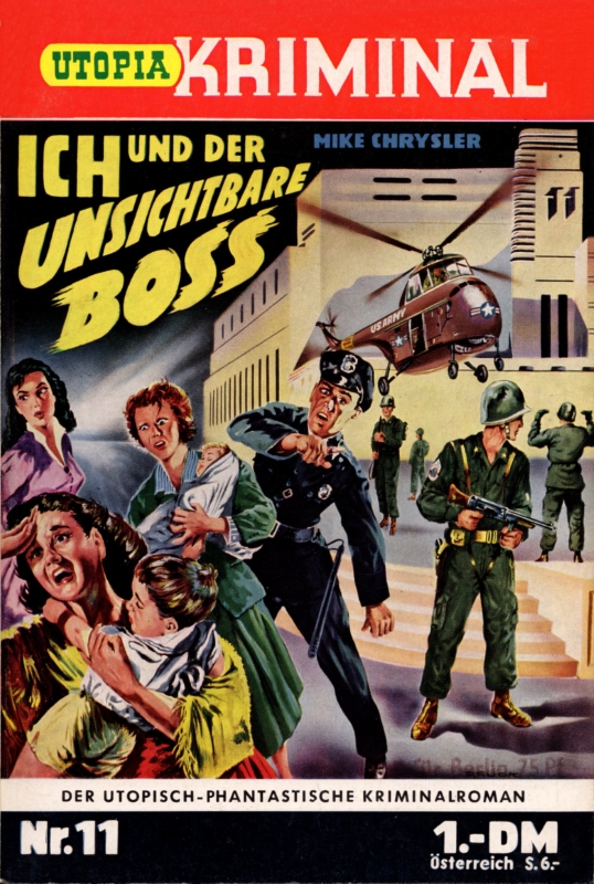 JACK SPENCER[ ungelöstes Pseudonym ]DER MORDKOMMISSION EINE NASENLÄNGE VORAUS[ Atomkrimi # 2 ]Anstelle des (noch) nicht vorhandenen Klappentextes des Leihbuchs der Klappentext des UTOPIA-Kriminal Hefts:Mord durch rätselhafte Strahlen?"Sehen Sie selbst", meinte der Professor, "ich kann den einmal hier ankommenden Energiestrahl nicht daran hindern, seinen Weg bis zu den Abnehmern zu suchen. Um Ihnen das Gerät zu zeigen, welches überall an der Wand hängen kann, halte ich eines hier in der Hand."Ich fand die Sache ungemein spannend. Zu gern hätte er Stonshone einige Fragen gestellt, jedoch drängte er uns von der Bühne, da wir für die vielen Gäste die Sicht versperrten. Da ich mich beeilte, an meinen Platz zurechzukommen, sah ich nicht, was hinter mir auf der Bühne vor sich ging. Mike stieß mich zur Seite, als ich an ihm vorübergehen wollte und jagte Blitz auf Blitz auf die Bühne. Ich wandte mich um und fuhr zusammen.Von Professor Stonshone, der sich in konvulsivischen Zuckungen wand, war nur noch die untere Gesichtshälte mit dem Rumpf zu sehen. Der obere Teil des Gesichtes war unsichtbar. Wie abgeschnitten. Stonshone schrie. Ich werde diese Worte nie vergessen. Nie wieder habe ich aus einem menschlichen Munde einen solchen Schrei vernommen. Wie ein Zauber wirkte der Spuk weiter. Im weiten Saal war es totenstill. Nun reichte Mike mir seine zweite Kamera. "Jage Bild auf Bild drauf!" schrie er mich an.Ich folgte dieser Aufforderung mechanisch. Nun war auch der Mund von Stonshone verschwunden. Und immer weiter fraß sich eine unerklärliche Kraft in den Körper des bekannten Wissenschaftlers hinein. Er schlug mit den Armen um sich. Nun besaß er keinen Kopf mehr, aber er bewegte sich noch. Ich konnte mich kaum rühren. Es war unfaßbar, was vor meinen Augen auf der Bühne geschah. Niemand wagte eine Hand zu rühren, um dem Professor zur Hilfe zu eilen. Nun war er bis zur Gürtellinie verschwunden. Niemand achtete darauf, daß die Röhren in dem Gerät erloschen. Ich stellte es so nebenbei fest. Und immer mehr von seinem Körper verschwand. Noch konnten wir die unmenschlich anmutenden Schreie vernehmen. Es ging mir durch Mark und Bein. Bis plötzlich nichts mehr von Professor Stonhone zu sehen war.ENGELBERT PFRIEM VERLAG - WUPPERTAL-KÜLLENHAHN[ OA | 1955 | 255 S. | 18,5 x 12,5 | Farb. ill. Supronyl | Reihe "Intercrim - Atomkrimi" # 2 ][ Serowy Katalog # 1146-2 | Weigand: QM # 99/100 | Kalbitz & Kästner # 5679 ]Rezenzionen / Materialien: