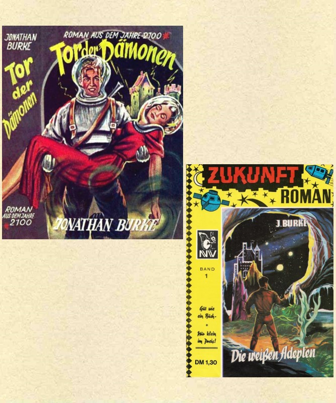 J. BURKE[ Jonathan Burke = John Frederick Burke (1922-2011) ]DIE WEISSEN ADEPTENS.F.-RomanGekürzter Nachdruck des BEWIN-Leihbuchs "Tor der Dämonen" von Jonathan Burke.Es geht um das Geschick der Menschheit, der ganzen Welt.Geheimnisvolle, fürchterliche Dinge gehen auf dem Morris-Hof in Wales vor. Es geht nicht nur um das Schicksal der wenigen Menschen, die ein Wochenende zusammengeführt hat: Nora, die Tochter - den alten Bauern Morris und seine kleine, stets tätige Frau - Denis, ihren heißblütigen Sohn - seinen Freund Frank Simon den Nachbarn - und Jonathan, den unheimlichen Gast aus Liverpool . . .In der alten Burgruine, die sich auf dem Gipfel des Hügels nahe dem Morris-Hof erhebt, regt sich finsteres, gräßliches Leben. Wesen aus der zweiten Dimension, welche in grauer Vorzeit von den "Weißen Adepten" verjagt wurden, wollen zurück. Die Priester von Atlantis wollen eine neue Herrschaft auf unserer Erde errichten.Wer aus der kleinen Gruppe ist der Hohepriester der Herren von Atlantis? Wer ist der Erwählte, der das unheimliche Tor erneut öffnet?Ein seltsamer Zweikampf spielt sich in den Mauern ab. Atemlos verfolgt der Leser das Geschehen, den aufbrechenden Kampf zwischen Licht und Finsternis, dessen Ausgang bis zum Schluß ungewiß bleibt.Impressum: © by Bewin-Verlag: B. Winterbach K.G., Menden · Verlags-Nr. 1630 · Gesamtherstellung: Gebr. Platzmann, Iserlohn.BEWIN-VERLAG / B. WINTERBACH K.G. Menden (Sauerland)[ gekürzte (und vermutlich unautorisierte) Neuausgabe | o.J. (1971) | 224 S. [7-224] | 18 x 12,5 | farb. ill. Supronyl m. SU: DM 10,80 | Angaben auf die frühere Ausgabe, den Originaltitel und den Übersetzer fehlen im Buch. Der Autor ist nur als J. Burke benannt ] +